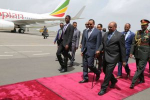 Sudanese President Omar el-Bashir and Ethiopian Prime Minister Dr. Abiy Ahmed at Bole International Airport for IGAD-s Extra-Ordinary Summit in Jun2 2018. Photo: horndiplomat.com/File