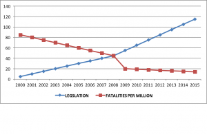 Figure 1 The impact of legislation on fatality rate