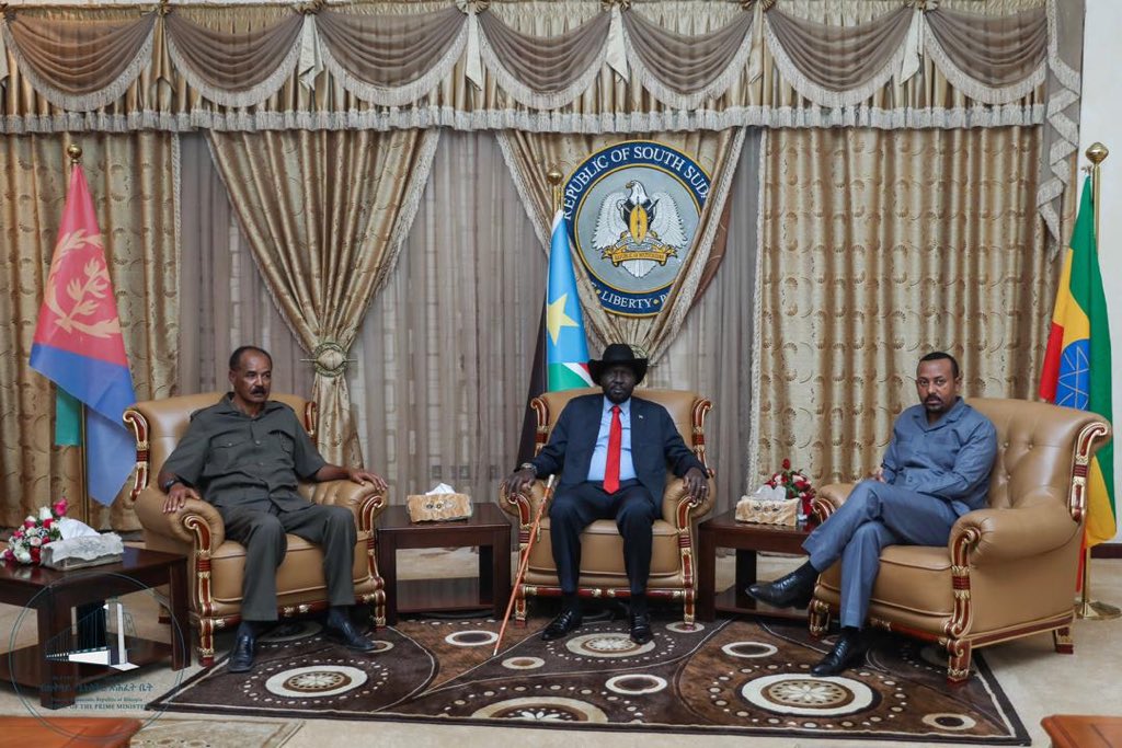 “PM Abiy Ahmed and President Isaias Afwerki have arrived in Juba, South Sudan. During their stay in Juba, they will hold discussions with President Salva Kiir and other higher government officials on regional peace, economic ties and infrastructure dev’t,” the Ethiopian PM office announced on Twitter.