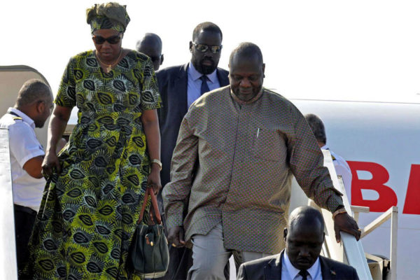 First Vice President and SPLM-IO leader Dr. Riek Machar (right) with his wife Angelina Nyajany Teny-the newly appointed Minister of Defense (left). Photo: File By Duop Chak Wuol March 13,…